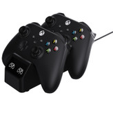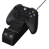 امکانات و قابلیتها : شارژر دسته برند sparkfox - شارژ همزمان 2 عدد کنترلر- دارای قابلیت شارژ سریع -دارای نمایشگر LED وضعیت شارژ - مناسب برای کنترلر بیسیم ایکس باکس سریز ایکس و اس – ایکس باکس وان- دارای کابل شارژ به طول یک متر